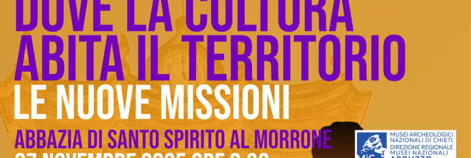 Ieri mattina, nella sala “Silone” del Consiglio Regionale d’Abruzzo, è stato presentato l’incontro “Dove la cultura abita il territorio – Le nuove missioni”, in programma domani, giovedì 27 novembre, presso l’abbazia celestiniana di Santo Spirito al Morrone, alle porte di Sulmona. L’appuntamento propone una riflessione sul ruolo della cultura come motore di sviluppo, di identità …